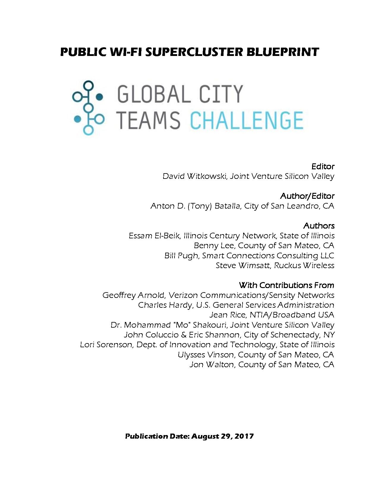 Description: The goals of the Global City Teams Challenge program are to bring together thought leaders and experts on a wide variety of topics relating to modern “Smart City” technologies and to have them share their knowledge and create best practices to assist those who are coming after them. The authors and contributors of this blueprint have designed, built, and managed Public Wi-Fi systems all over the United States and it is this spirit of collaboration and knowledge sharing that drives this effort forward.