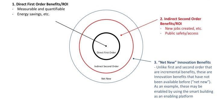 When selling the value and ROI of smart buildings to municipalities, one must understand not only what direct, indirect, and innovation benefits are offered to the city, but also how these benefits are aligned to the four civic dimensions.
