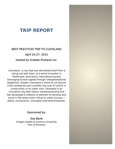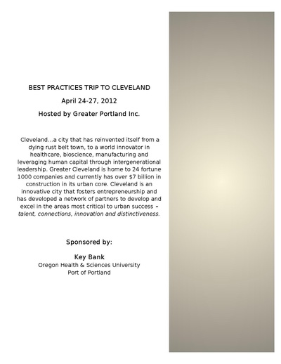 Description: Cleveland…a city that has reinvented itself from a dying rust belt town, to a world innovator in healthcare, bioscience, manufacturing and leveraging human capital through intergenerational leadership. Greater Cleveland is home to 24 fortune 1000 companies and currently has over $7 billion in construction in its urban core. Cleveland is an innovative city that fosters entrepreneurship and has developed a network of partners to develop and excel in the areas most critical to urban success – talent, connections, innovation and distinctiveness.