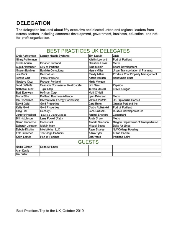 | Portland-region leaders from business, government and non-profit sectors traveled to England and Scotland in October 2019 to explore the way cities and urban regions—in various stages of economic development and transition—are addressing issues common to the Portland. | ||