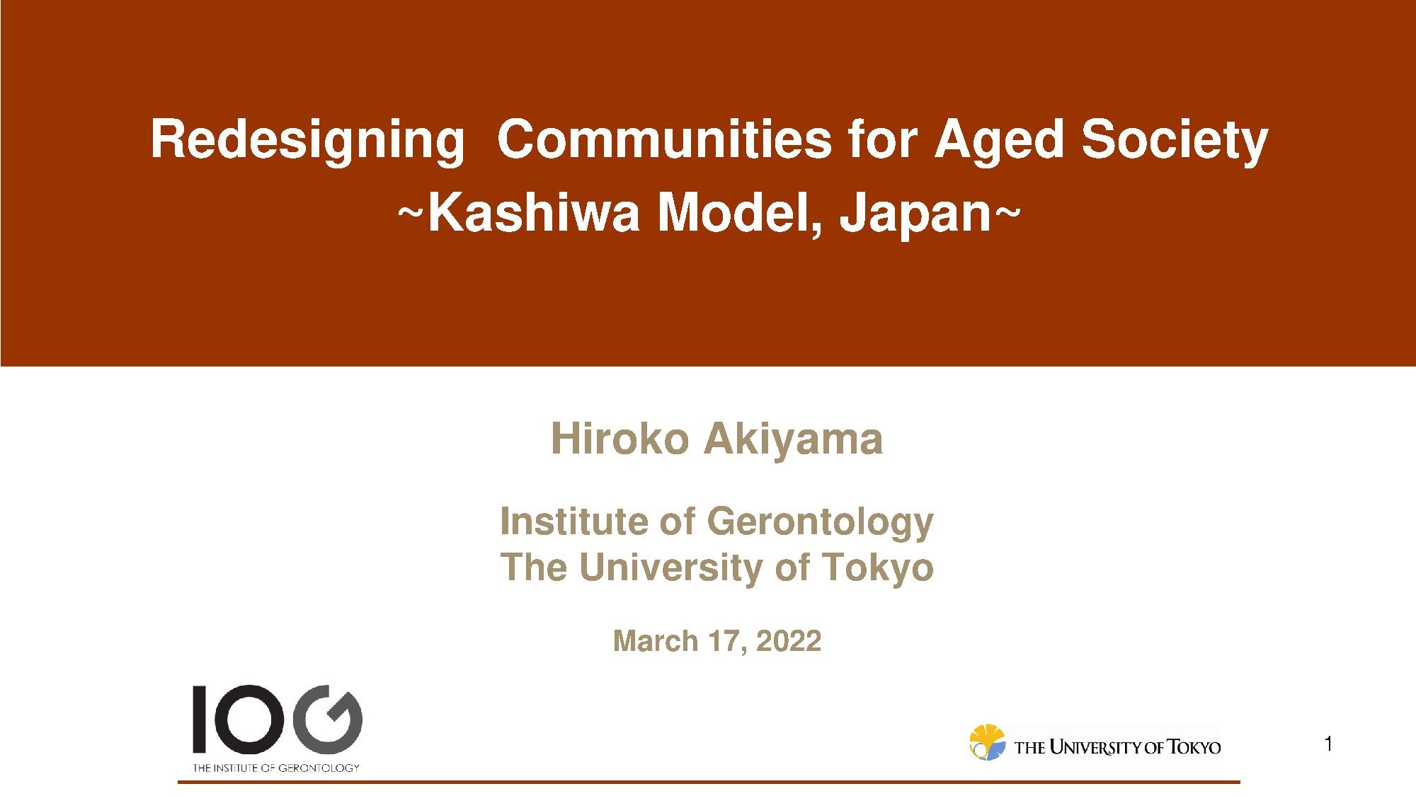 Description: Japan is 20 to 30 years ahead of the U.S. in terms of demographic change, knowledge, and experiences in addressing an aging society. This webinar hosts one of the world-leading gerontologists, professor Hiroko Akiyama, from the University of Tokyo.