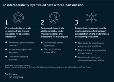 - guiding principles for trade finance interoperability—nonmandatory recommendations for market participants focused on improving service levels while reducing players’ cost to serve
