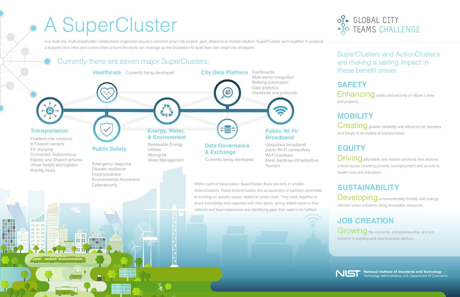 A SuperCluster is a multi-city, multi-stakeholder collaboration organized around common project objectives and shared solutions. Committed cities/communities and partners jointly tackle shared issues, develop and deploy shared solutions to create economies of scale.
