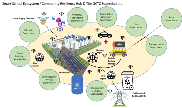 This chapter demonstrates how integrated smart systems that draw on a number of technologies, processes, and data can enable a community structures to function more efficiently for their main purpose as well as be prepared to serve as a “community resiliency hub” and/or “emergency shelter” as needed. Selecting a school as a community resilience hub leverages its existing function for families already charged with protecting children, employing vetted professionals, and communicating with parents, public safety agencies, and city government as well as embuing the school with some additional important functions and responsibilities to an extended community population. (The pilot for this project--using the Buckman School in Portland, Oregon--received a National Science Foundation Planning Grant in 2022.)