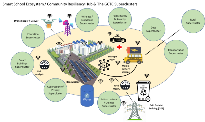 This chapter demonstrates how integrated smart systems that draw on a number of technologies, processes, and data can enable a community structures like schools to function more efficiently for their main purpose as well as be prepared to serve as a “Community Resiliency Hub” and/or “Emergency Shelter” as needed. This leverages the existing function of the school as a community hub for families already charged with protecting children, employing vetted professionals, and communicating with parents, public safety, city government.